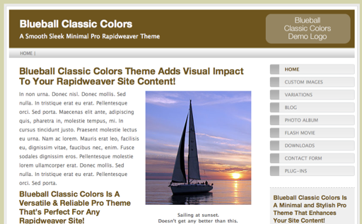 - Third Party Plugins - The Blueball Pro Colors theme has been tested on and works with Blocks, Columns, Accordion, Collage, Carousel, Sitemap, RapidBlog, RapidSearch, and RapidAlbum third party page plug-ins.