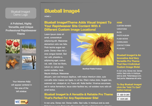 - Includes Adsense ad variation - Ad will display in the sidebar column underneath the nav menu. Can be turned on and off on a page by page basis.