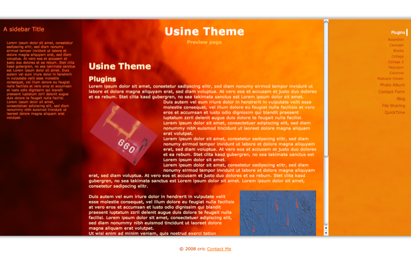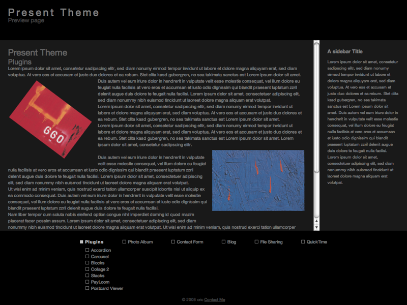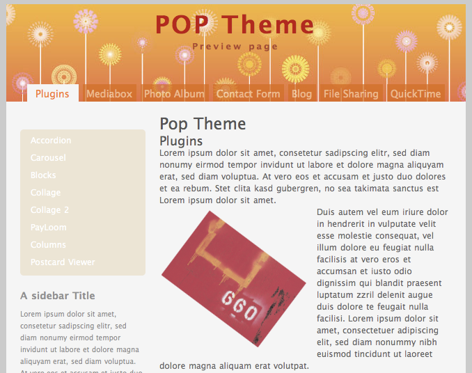 - Upgraded to fully support the new cool custom color feature of RapidWeaver 3.6, so you can adjust each part of the layout with your own colors (body, header, sidebar, sidebar 2, content)