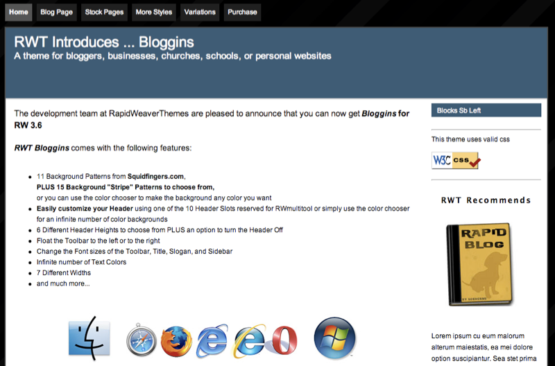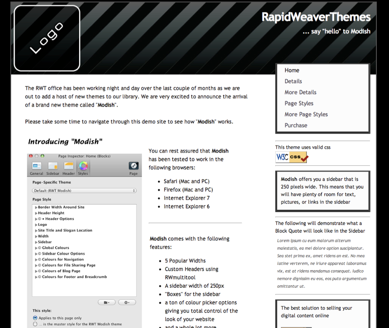 RapidWeaver Themes finely crafted for RapidWeaver