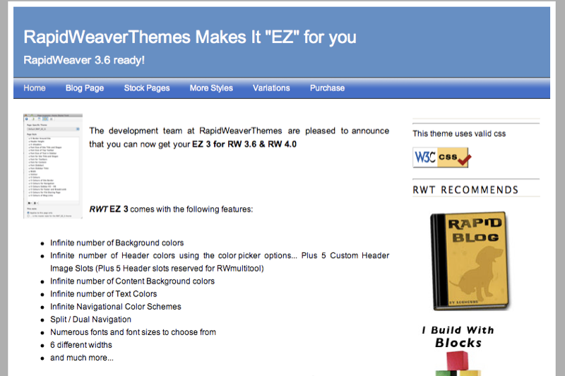 http://www.rapidweaverthemes.com/index.phpDisclaimer: The description in the Hover-boxes are not from me. I copied and pasted this from the developers site. This is also for all screenshots.