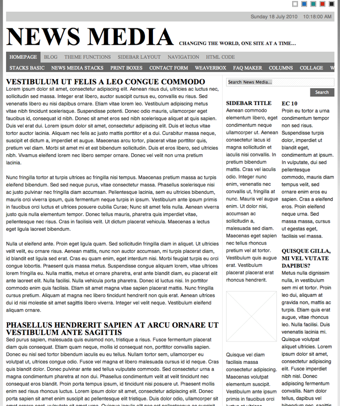 Packed with professional features, giving you the power to develop stunning sites which are both flexible, well structured and highly functional for end users. News Media is ideal for content-heavy websites and has become a popular choice with independent publishers and entrepreneurial journalists. Key features include support for up to 10 levels of navigation, 15 Extra Content containers and a choice between single or double sidebar layouts. News Media also has a broad selection of theme colour settings and text styling options. Despite cramming so many features in, News Media remains a fast and nibble theme boasting excellent cross-browser compatibility.